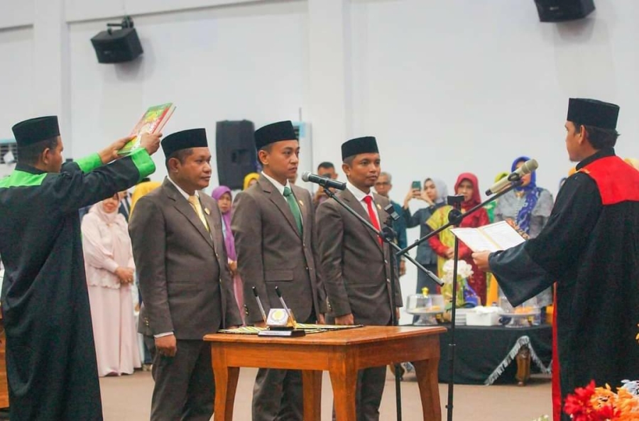 BAUBAU, GAGASSULTRA.COM - Pimpinan Dewan Perwakilan Rakyat Daerah (DPRD) Kota Baubau periode 2024-2029, resmi dilantik. Ardin Jufri (Golkar) ditetapkan sebagai Ketua, Natas Aryu Prawira Tamim (PPP) sebagai Wakil Ketua I dan Ardriansyah Farming (PDIP) sebagai Wakil Ketua II. Pengambilan sumpah jabatan ini digelar dalam rapat paripurna DPRD Kota Baubau Selasa,(19/11/2024).