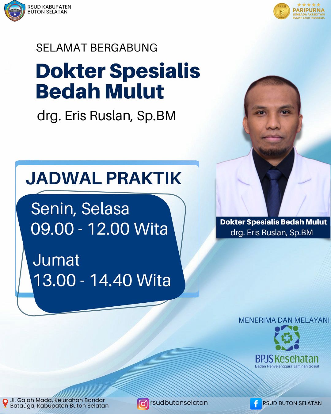 Tambahnya, selain warga Busel, RSUD yang berlokasi di Jalan Gajah Mada, Kelurahan Bandar Batauga, Kecamatan Batauga juga melayani pasien luar daerah Busel. Saat ini, untuk pelayanan bedah mulut, selain pasien umum juga telah bekerjasama dengan BPJS Kesehatan. “Ya, sudah menerima BPJS,” tutupnya.