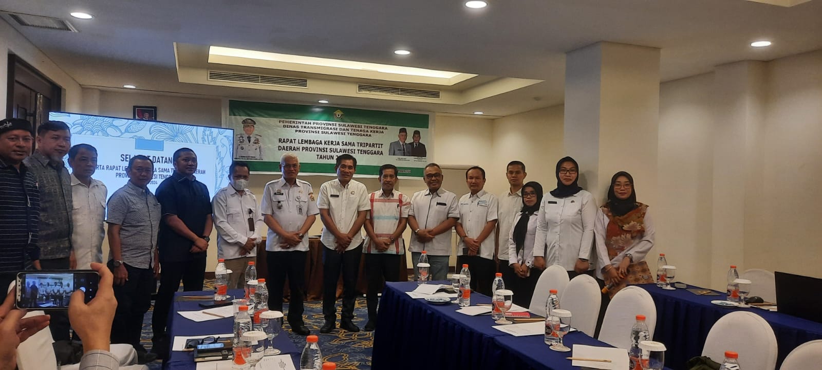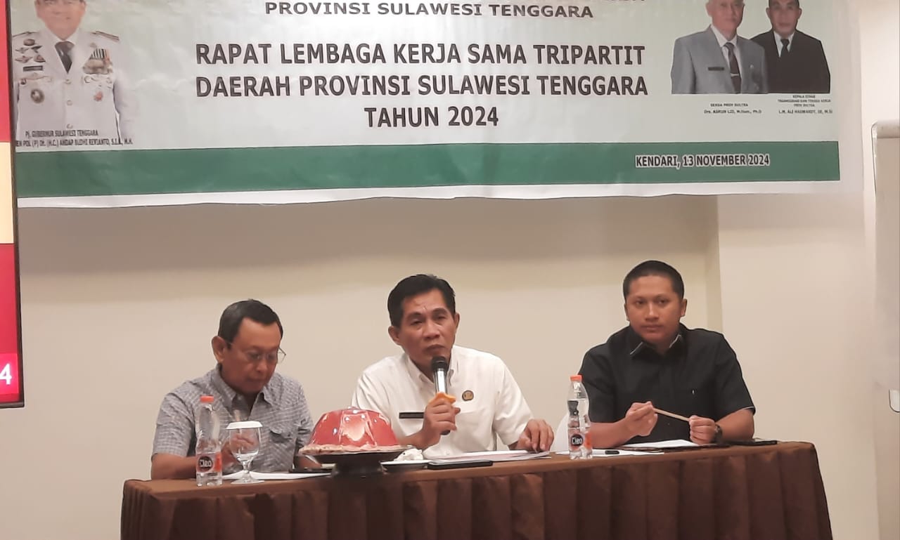 KENDARI,GAGASSULTRA.COM-Dinas Transmigrasi dan Tenaga Kerja (Transnaker) Sulawesi Tenggara (Sultra) melalui Bidang Pembinaan Hubungan Industrial dan Jamsostek menggelar Rapat Lembaga Kerja Sama (LKS) Tripartit Daerah Provinsi Sultra Tahun 2024, bertempat di salah satu hotel di Kota Kendari, Rabu (13/11/2024).