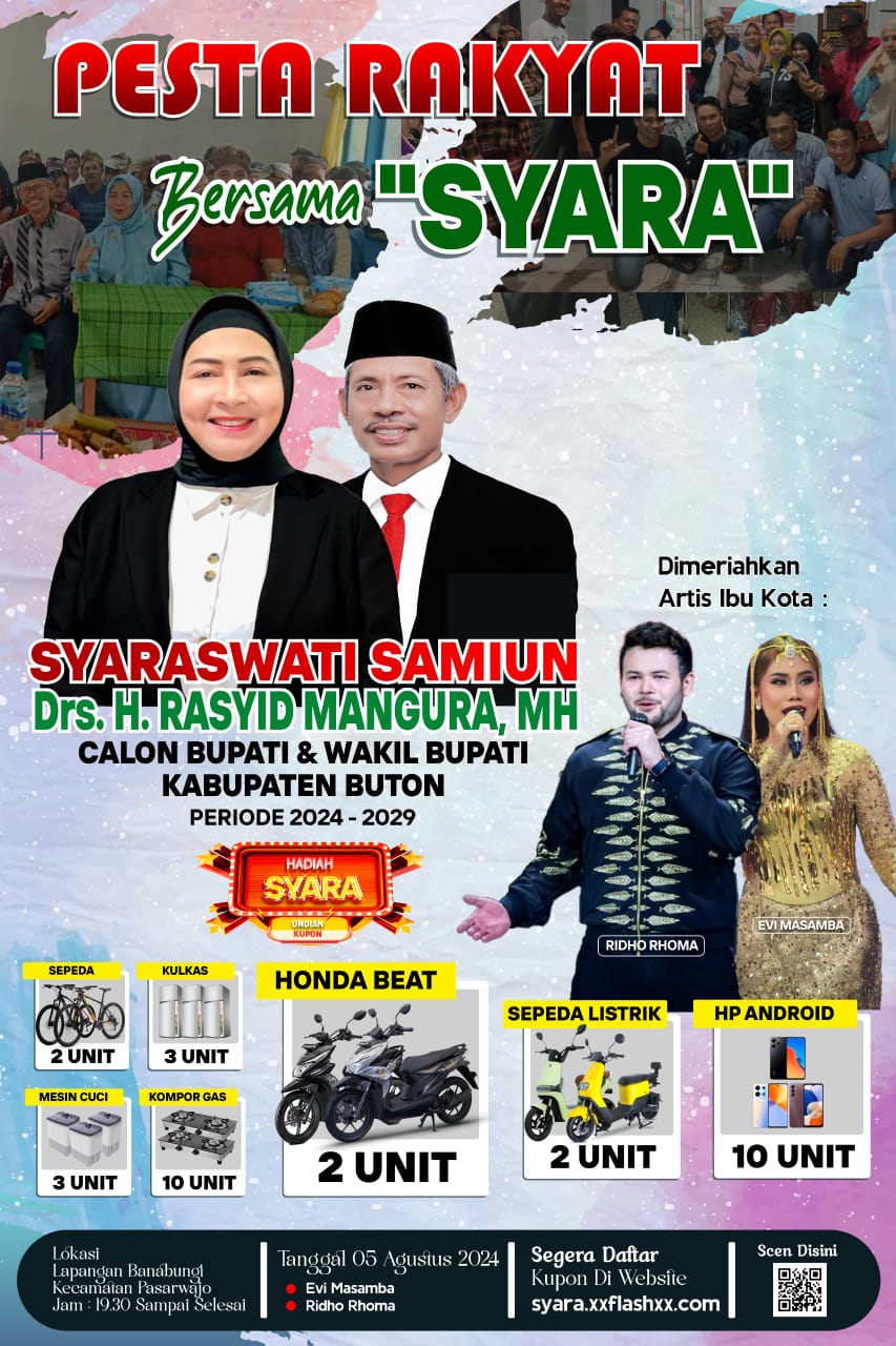"Untuk Kota Baubau akan dilaksanakan selama tiga hari berturut, mulai tanggal 25 Juli - 27 Juli. Buton Tengah tanggal 3 Agustus, kemudian berlanjut di kabupaten Buton tanggal 5 Agustus. Artis yang akan ikut meramaikan pesta rakyat ada Andika Kangen band, Wizz Baker, Ghea Youbi, Ridho Rhoma dan Evi Masamba,"ungkapnya.