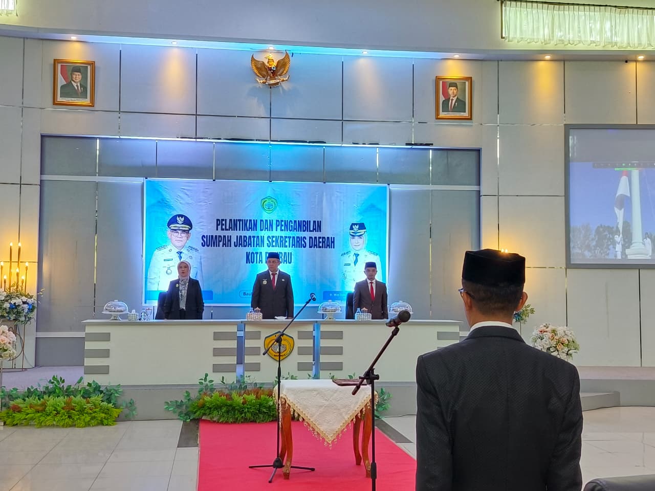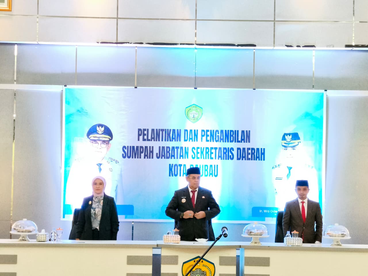 Pelantikan Sekda Kota Baubau La Ode Darussalam, S.Sos, M.Si dilaksanakan di aula Kantor Wali Kota Baubau Palagimata pada Rabu (14/01/2026) dan turut dihadiri oleh Wakil Wali Kota Baubau Ir Wa Ode Hamsinah Bolu, M.Si, Wakil Ketua DPRD Kota Baubau Adriansyah Farmin, ST, Forkompinda, Pejabat Eselon II, III, IV lingkup Pemkot Baubau.