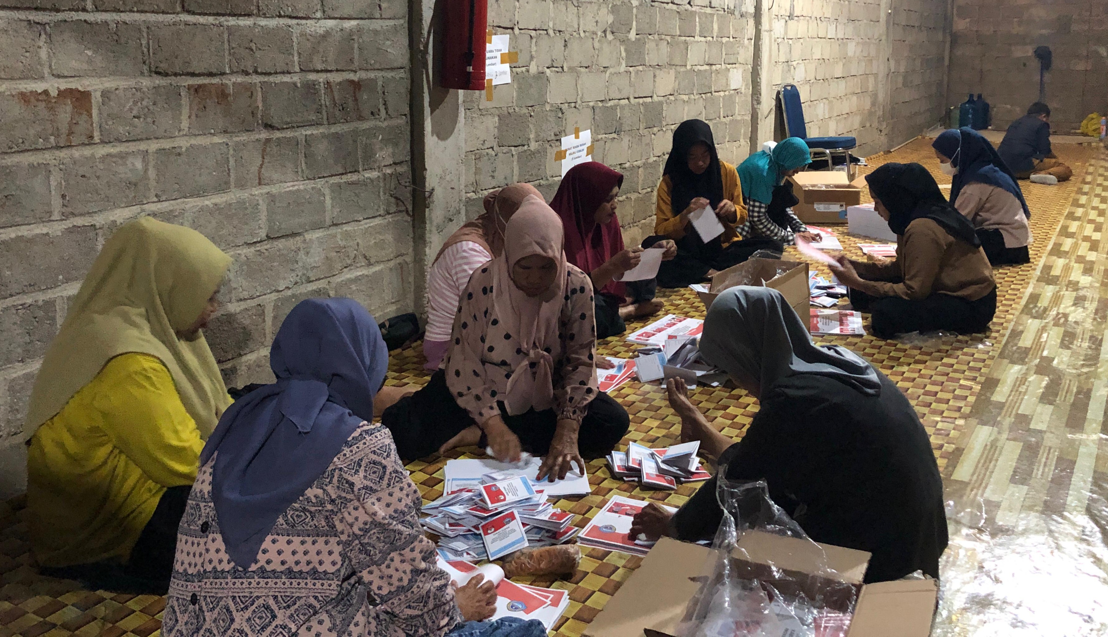 Suasana sortir surat suara di gudang KPU Busel