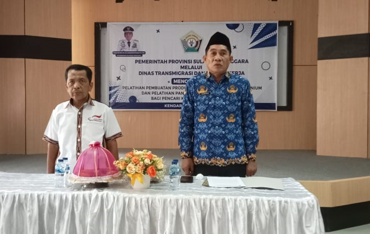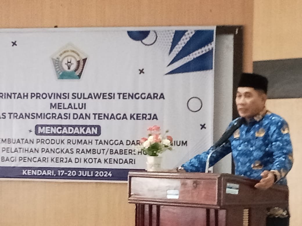 KENDARI,GAGASSULTRA.COM-Dinas Transmigrasi dan Tenaga Kerja (Transnaker) Sulawesi Tenggara (Sultra), menggelar pelatihan pembuatan produk rumah tangga dari alumnium dan pangkas rambut/babershop. Kegiatan ini dibuka langsung Kepala Dinas Transnaker Sultra, LM Ali Haswandy, SE.MSi di Aula Dinas Transnaker Sultra, Rabu (17/07/2024).