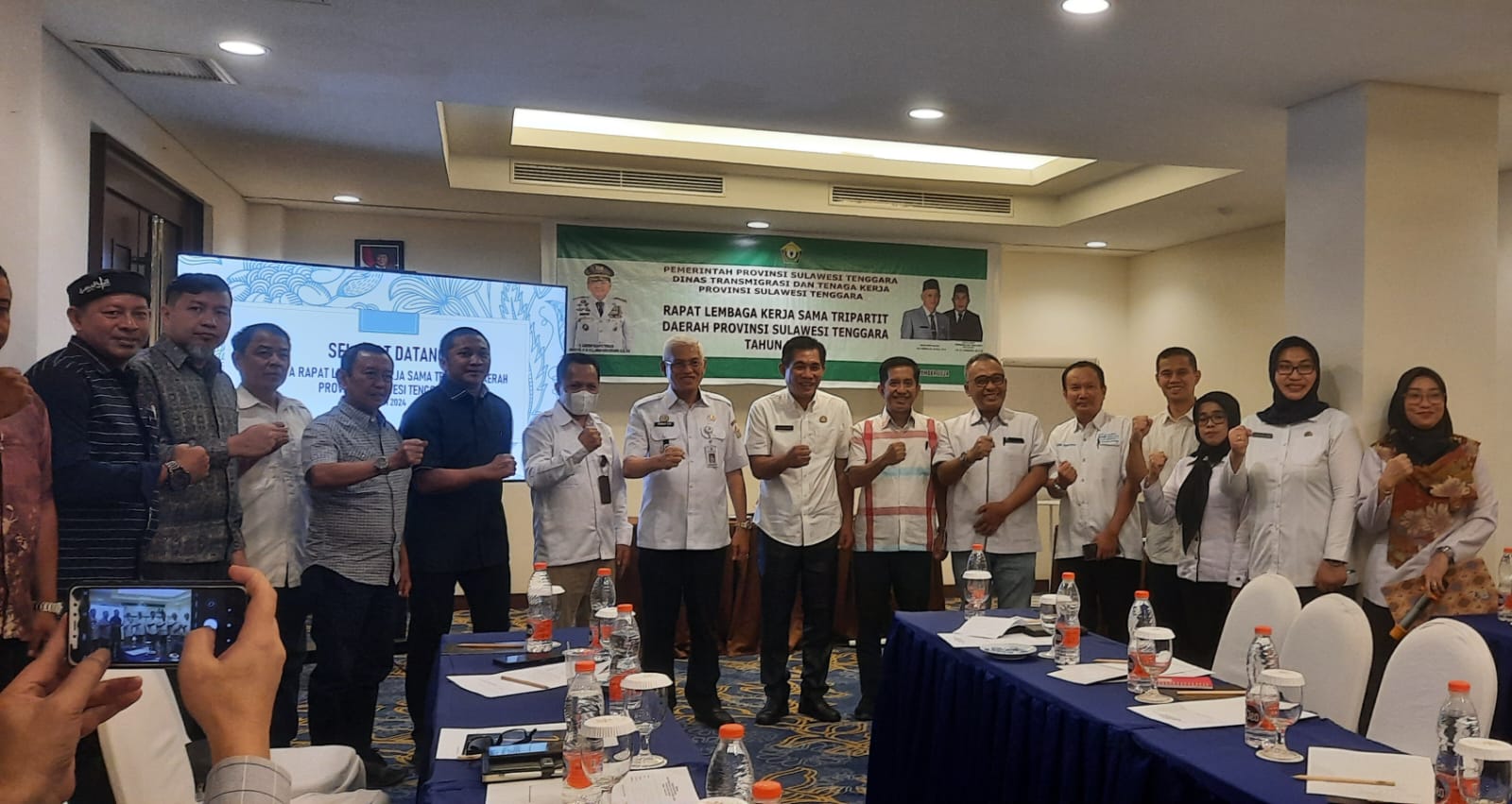 KENDARI,GAGASSULTRA.COM-Dinas Transmigrasi dan Tenaga Kerja (Transnaker) Sulawesi Tenggara (Sultra) melalui Bidang Pembinaan Hubungan Industrial dan Jamsostek menggelar Rapat Lembaga Kerja Sama (LKS) Tripartit Daerah Provinsi Sultra Tahun 2024, bertempat di salah satu hotel di Kota Kendari, Rabu (13/11/2024).