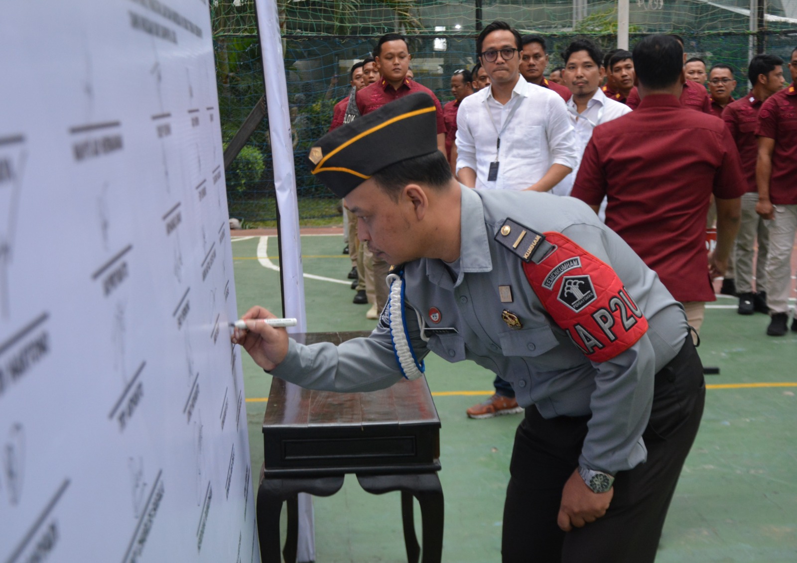 JAKARTA, GAGAS SULTRA.COM - Rumah Tahanan Negara (Rutan) Kelas I Jakarta Pusat menggelar apel deklarasi dan penandatanganan ‘Teken’ komitmen bersama zero handphone, pungutan liar, dan narkoba (Halinar).