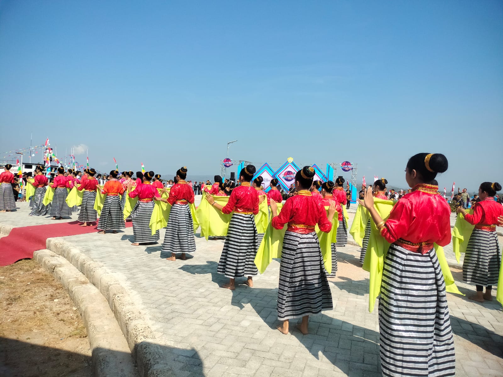 Event tahunan itu, tampak semarak dengan penampilan 130 penari kolosal oleh Kelompok Sadar Wisata (Pokdarwis) Lakologou.