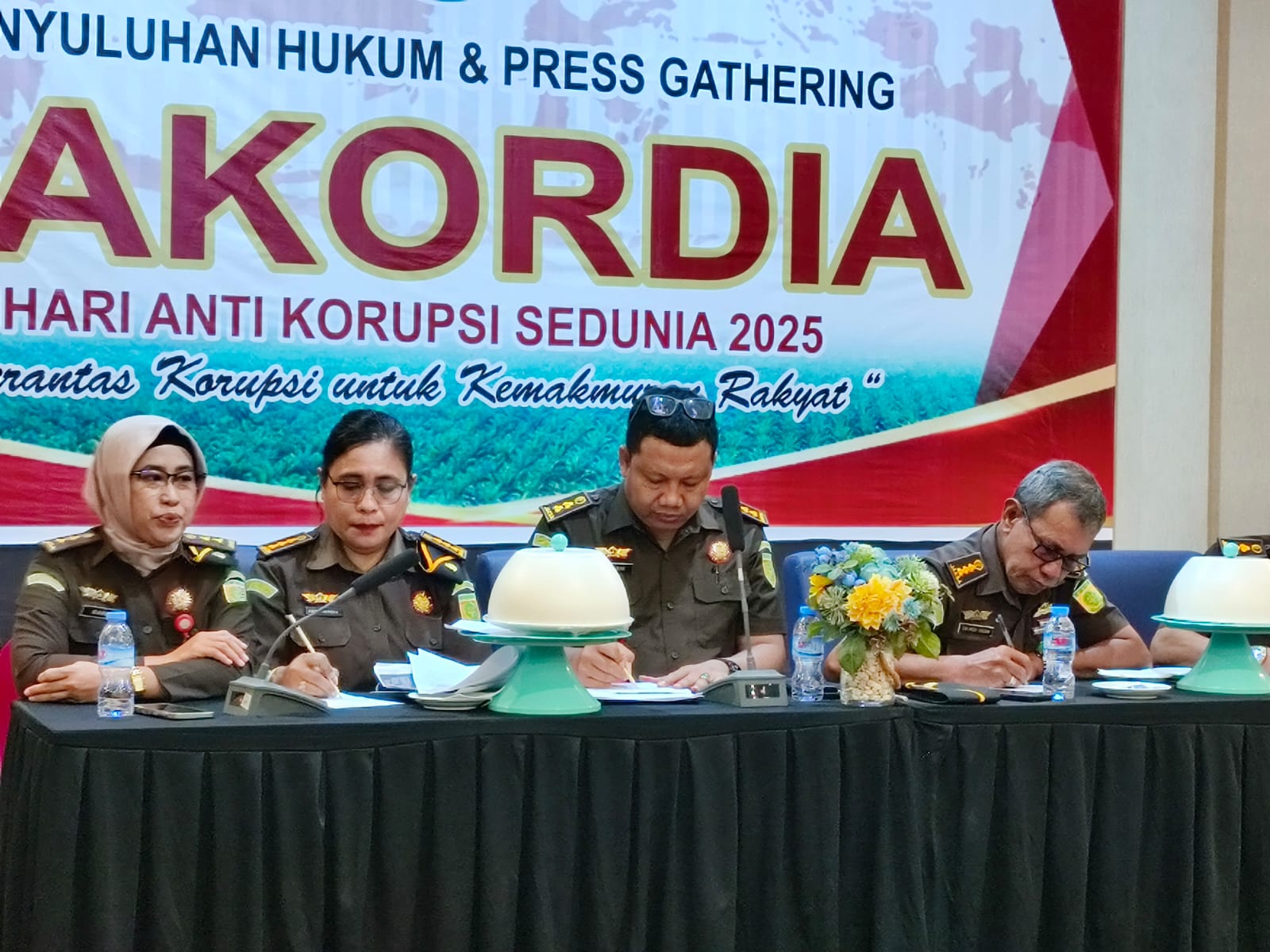 Tim Kejati Sultra saat kegiatan penyuluhan hukum dan press gathering dalam rangka peringatan Hari Anti Korupsi Sedunia 2025