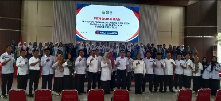 KENDARI,GAGASSULTRA.COM-Kepala Dinas Pendidikan dan Kebudayaan (Disdikbud) Sulawesi Tenggara (Sultra), Prof.Aris Badara mengukuhkan pengurus Forum Komunikasi OSIS (FKO) SMA/SMK se Kota Kendari. Pengukuhan ini digelar di Aula Disdikbud Sultra, Rabu (07/01/2026).